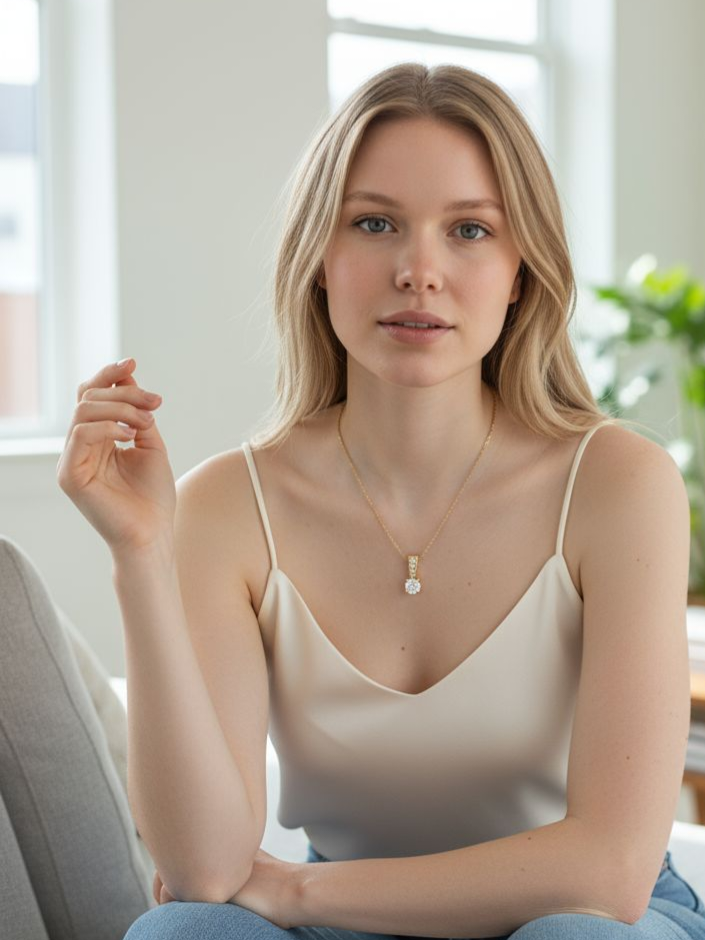 Klassisk solitär Diamanthänge med 4 klor och Diamant ögla.